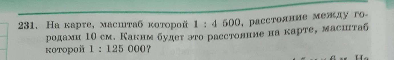 231. На карте, масштаб которой 1 : 4 500, расстояние между го- родами 10 см. Каким будет это расстояние на карте, масштаб которой 1: 125 000? как уст на