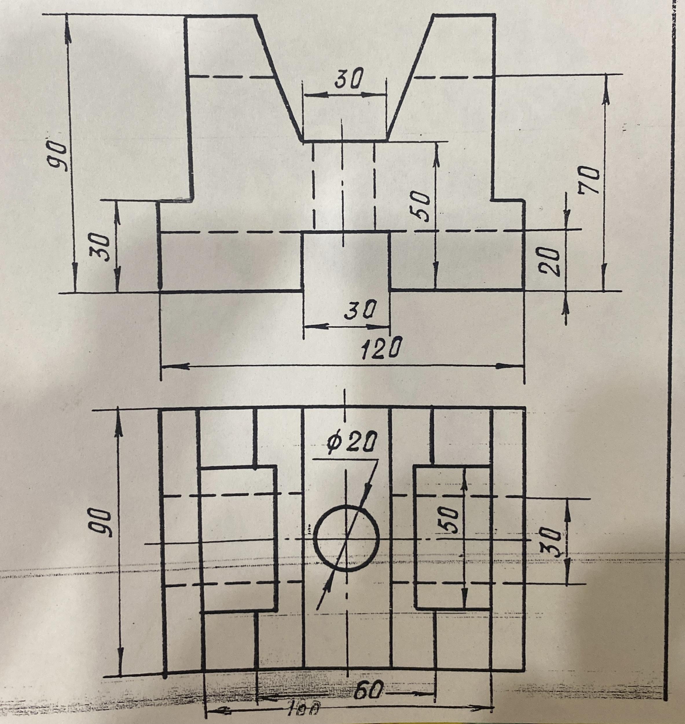Построить 3 вида по двум заданным. Ещё нужно показать Фронтальный и профильный разрез. Указать размеры. Пожалуйста :)