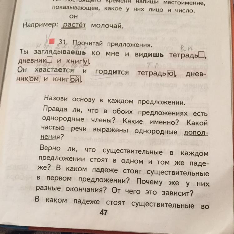 Ты заглядываешь ко мне и видишь тетрадь--- (сущ., муж.р., В.п.) , дневник--- (сущ., муж.р., В.п.) и книгу--- (сущ., жен.р., В.п.).