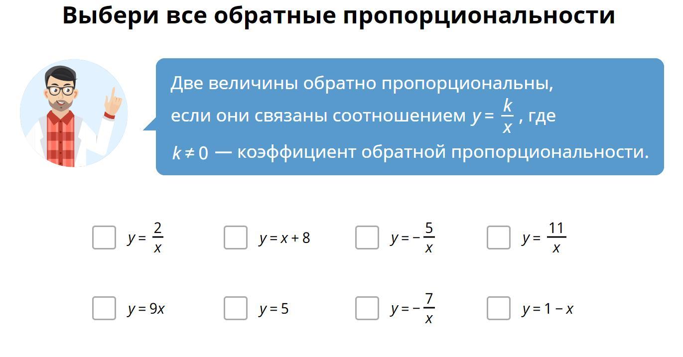 Выбери все обратные пропорциональности