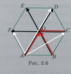 диагонали правильного шестиугольника ABCDEF пересекаются в точке О. Укажите вектор, равный вектору 1/2AD - 1/2CF + 1/2BE, началом и концом которого являются вершины этого шестиугольника. (рис. 3.6.)