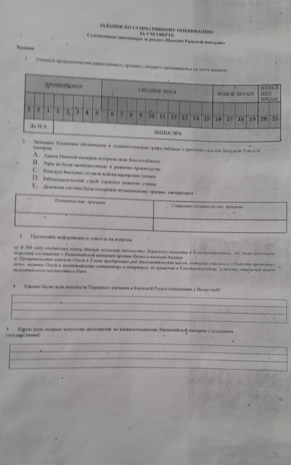 задание по суммативному оцениванию за 1 четверть суммативное оценивание за раздел "падение римской империи" по всемирной истории 6 класс 1 отметьте древний мир средние века новое время новейшее время