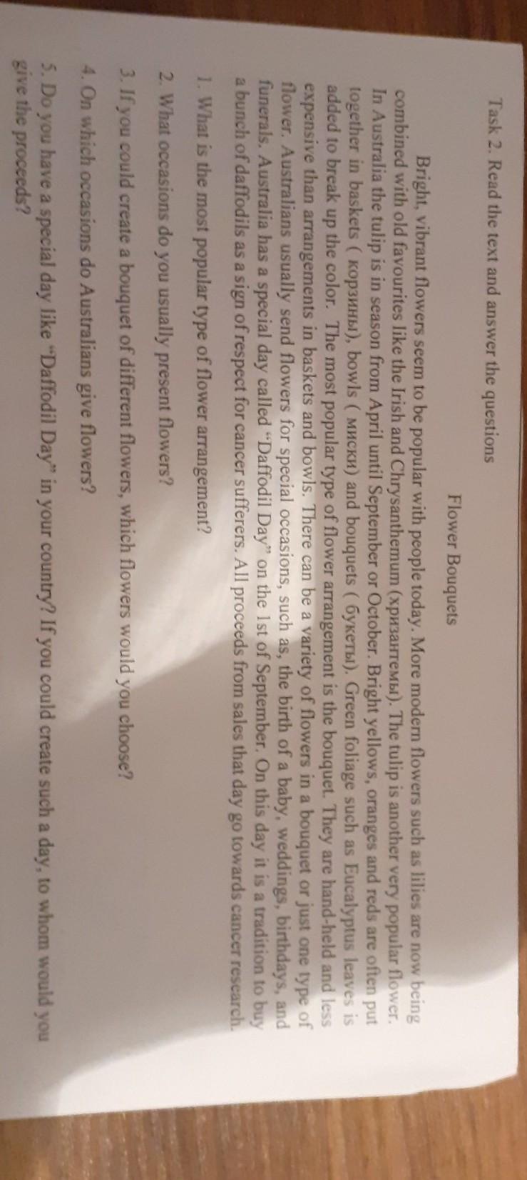 Ответ: 1) The most popular type of flower arrangement is the bouquet.