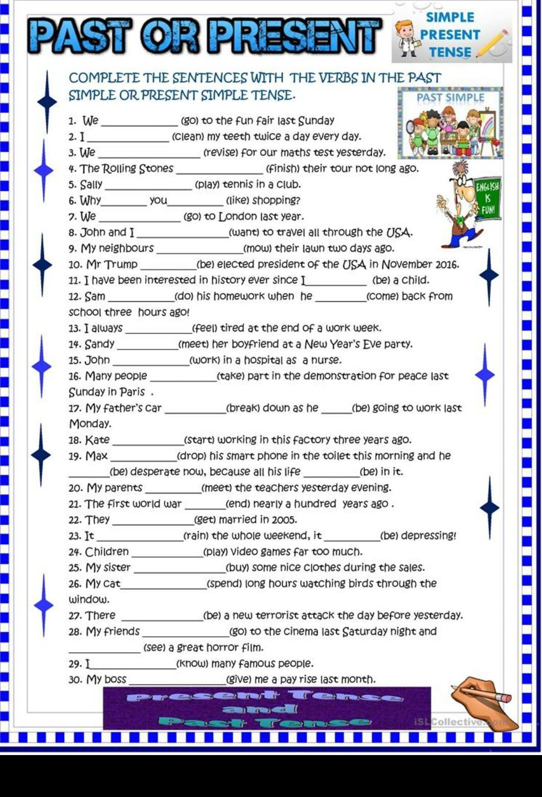 PAST OR PRESENT завершите предложения глаголоми в прошедшем простом или настоящем простом времени