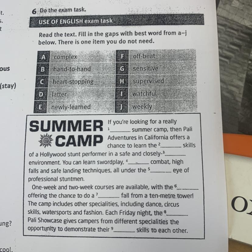 Read the text. Fill the gaps with best word from a-j below. There is one item you do not need. SUMMER CAMP