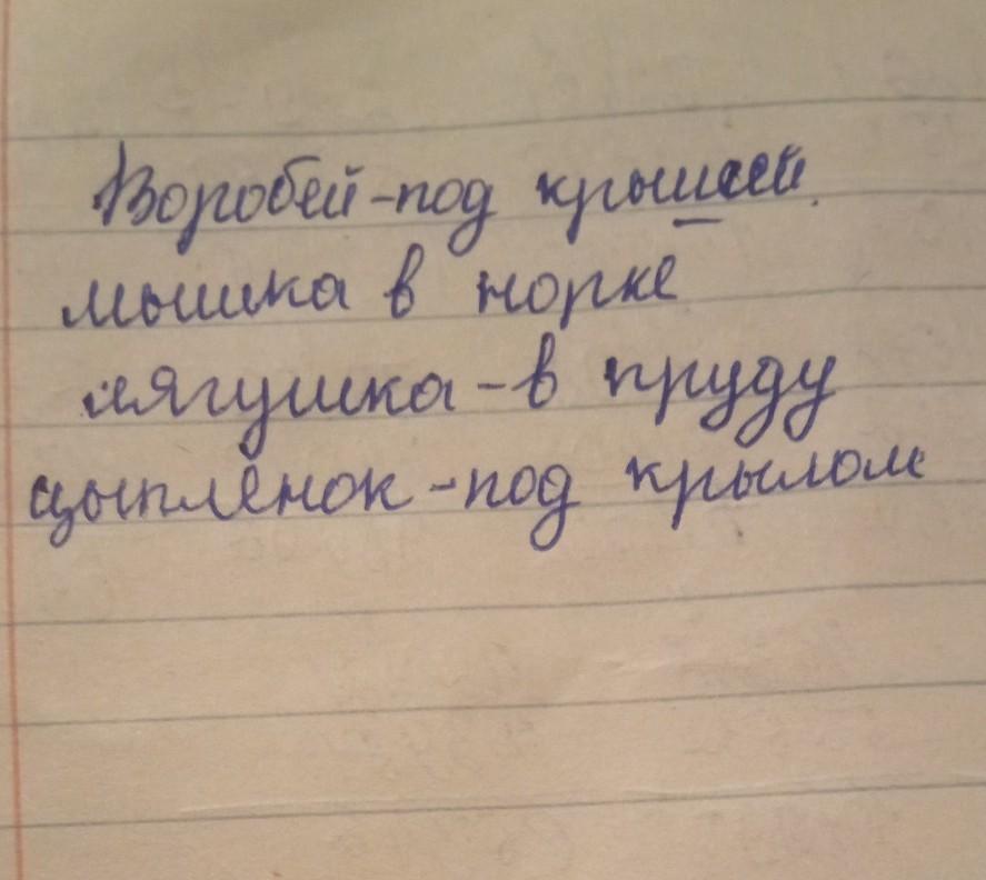 7. Установи соответствие. Воробей живёт под крышей. В тёплой норке - домик мышки. У лягушки дом - в пруду. Гнездо пеночки - в саду. - Эй, цыплёнок, где твой дом? Он у мамы под крылом. воробей мышка лягушка цыплёнок пёночка в норке в пруду под крышей в саду под крылом . Запиши. Кто где живёт? Объясни, как неживая природа помогает живой. - Согласен ли ты с выводом. «Природа даёт человеку одежду, питание, материалы для жилья, здоровье, хорошее настроёние». Докажи.