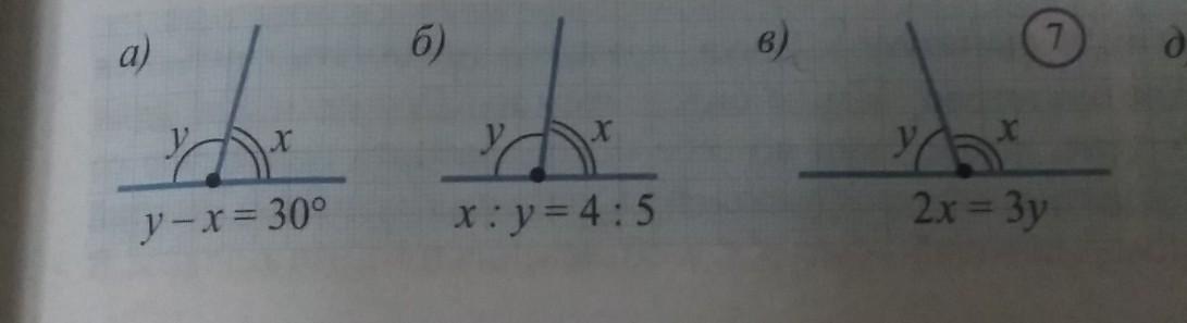 б) x:y=4:5 т.е. угол х содержит 4 части, угол у содержит 5 частей