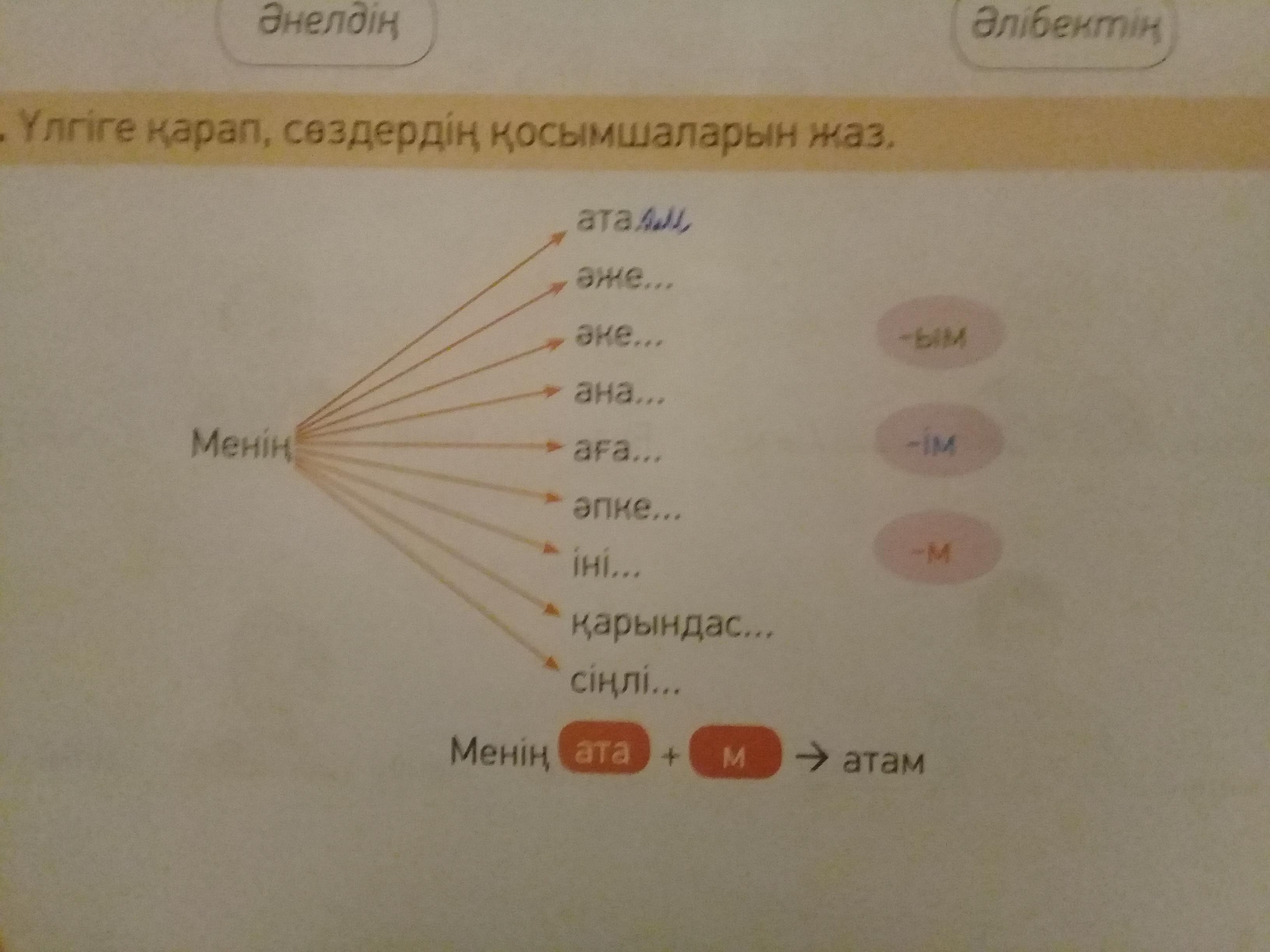 Үлгіге қарап,сөздердің қосымшалардың жаз.