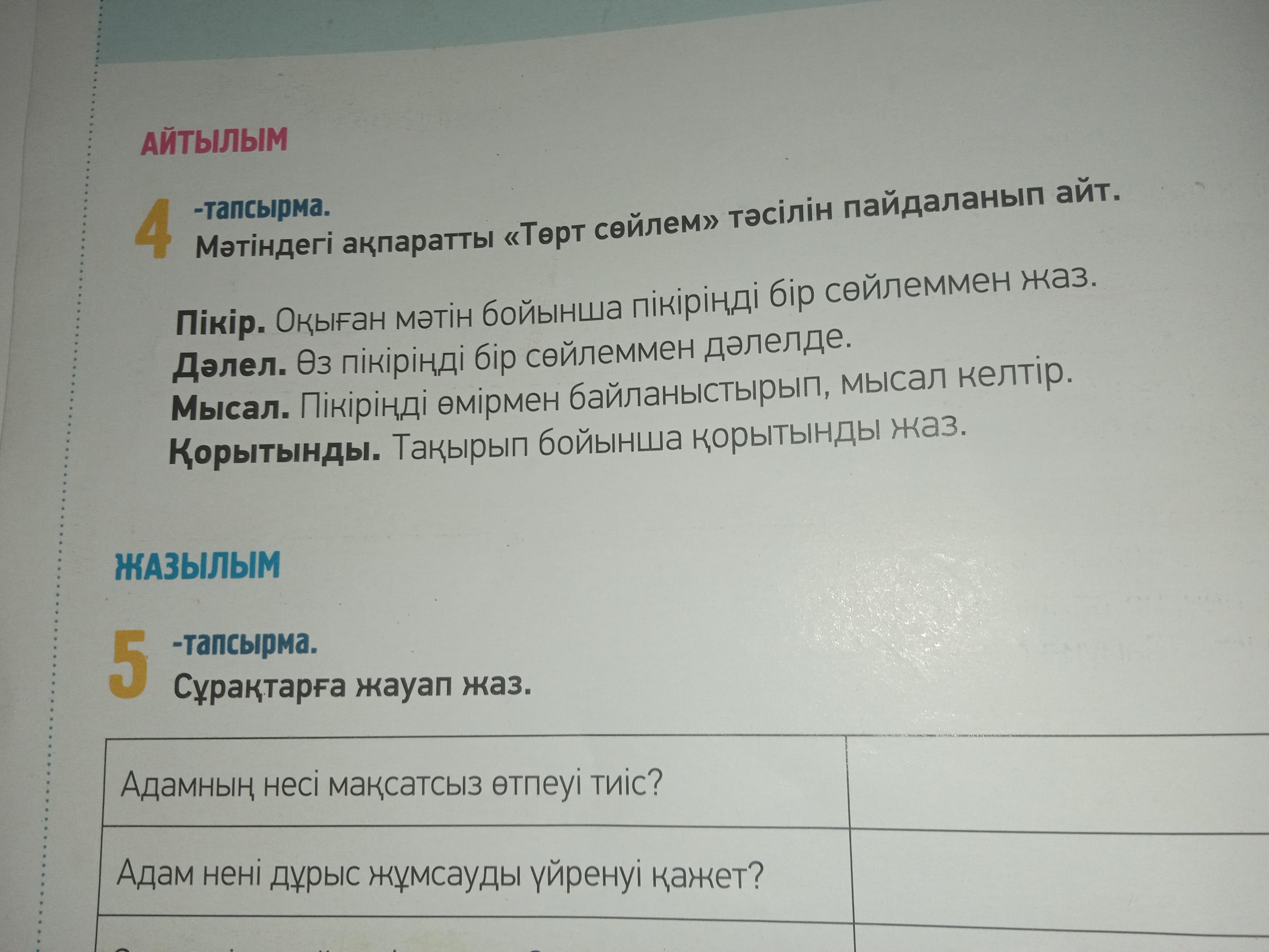 Срочно. Помогите сделать 4 тапсырма по тексту