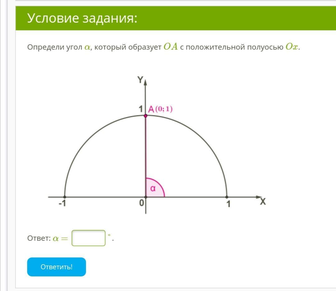 2)Определи угол α, который образует OA с положительной полуосью Ox.