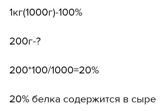 В одном килограмме сыра содержится 200 г белка. Сколько процентов белка содержится в сыре?