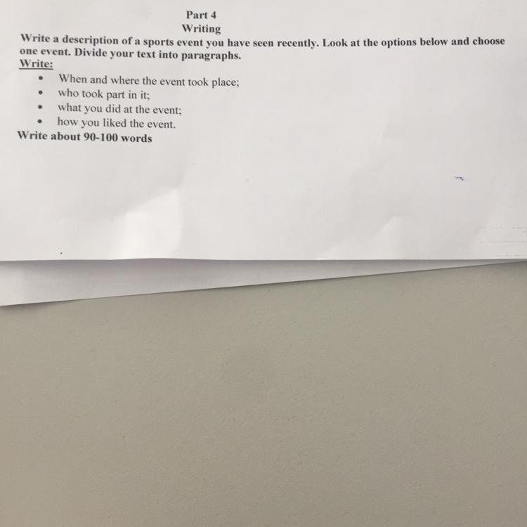 Write a description of a sports event you have seen recently. Look at the options below and choose one event. Divide your text into paragraphs.