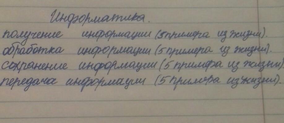 читаю книгу я также обрабатываю полученную информацию; слушаю лекцию я также обрабатываю полученную информацию; решая кроссворд я обрабатываю информацию, что бы решить вопрос; решая домашнее задание я обрабатываю задания; играя в игру я обрабатываю информацию, что бы делать какие-то действия.