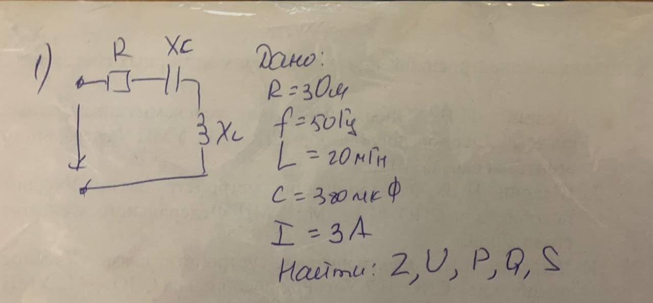 Xc = 1 / (ω·C) = 1 / (2π·f·C) = 1 / (2·3,14·50·380·10⁻⁶) ≈ 8,4 Ом