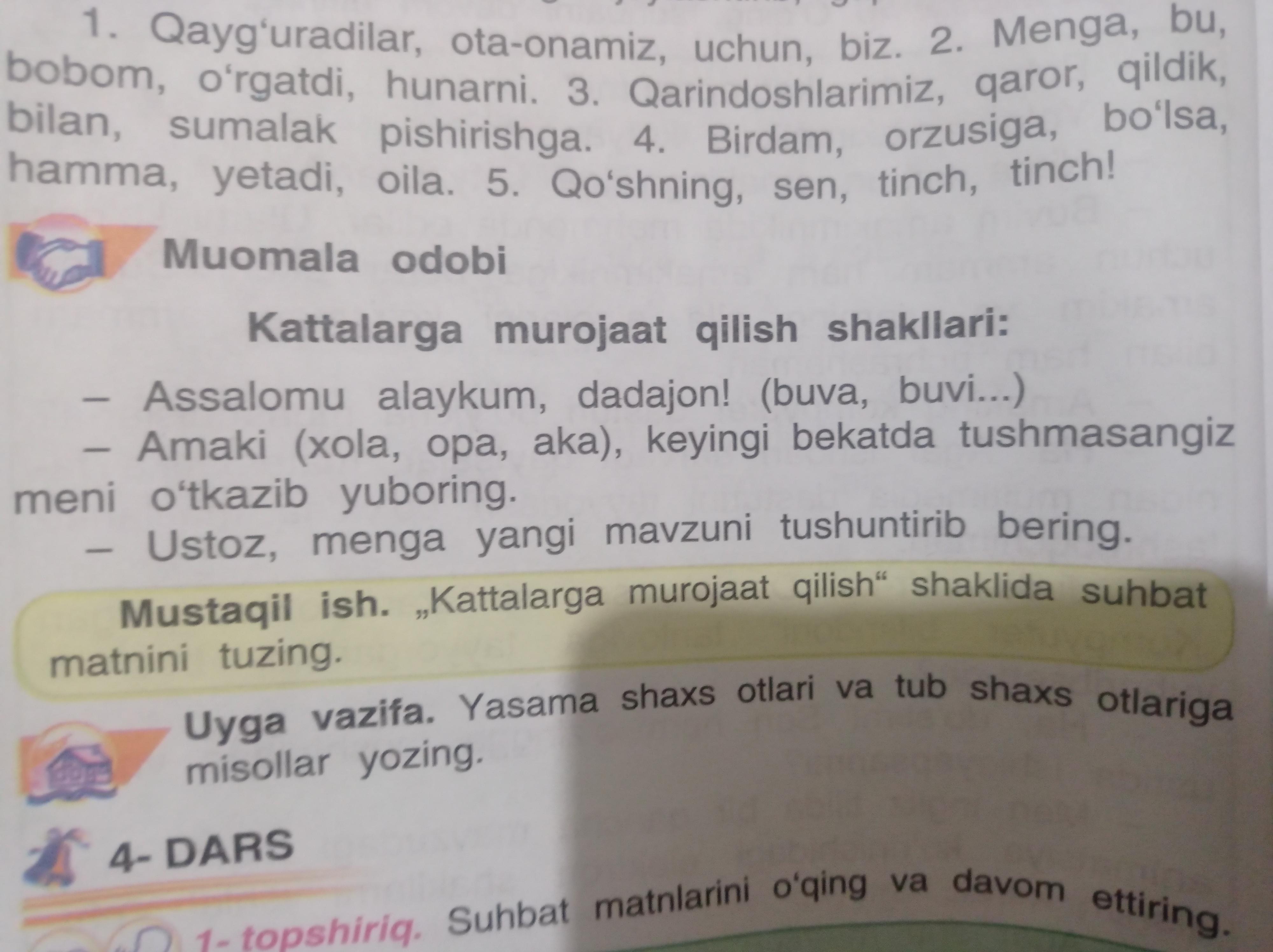 Предмет: Оʻzbek tili,