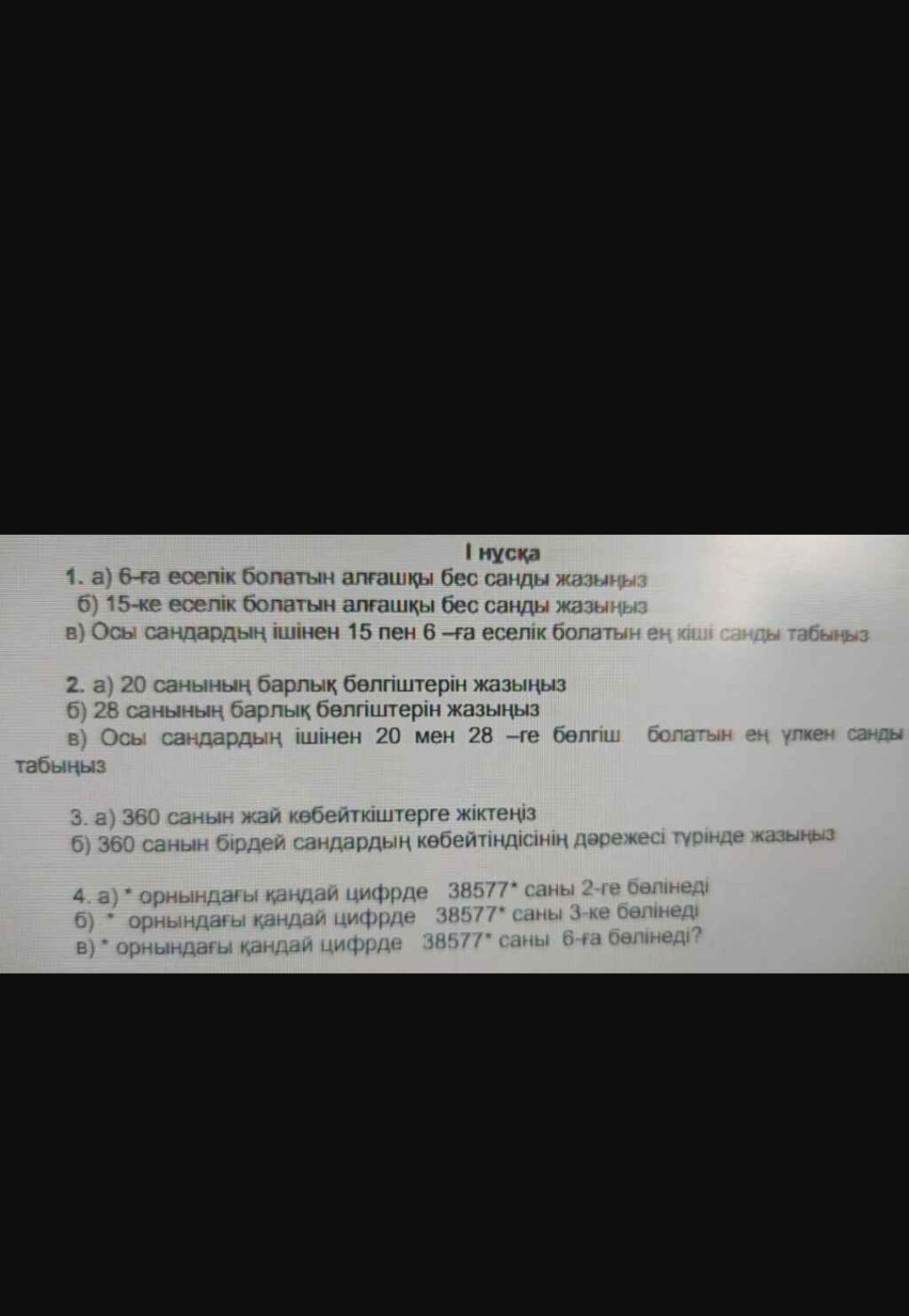 а)1,2,4,7,14,28.б)1,2,4,7,14,28.в)28:4=7,20:4=5. 3-тапсырма