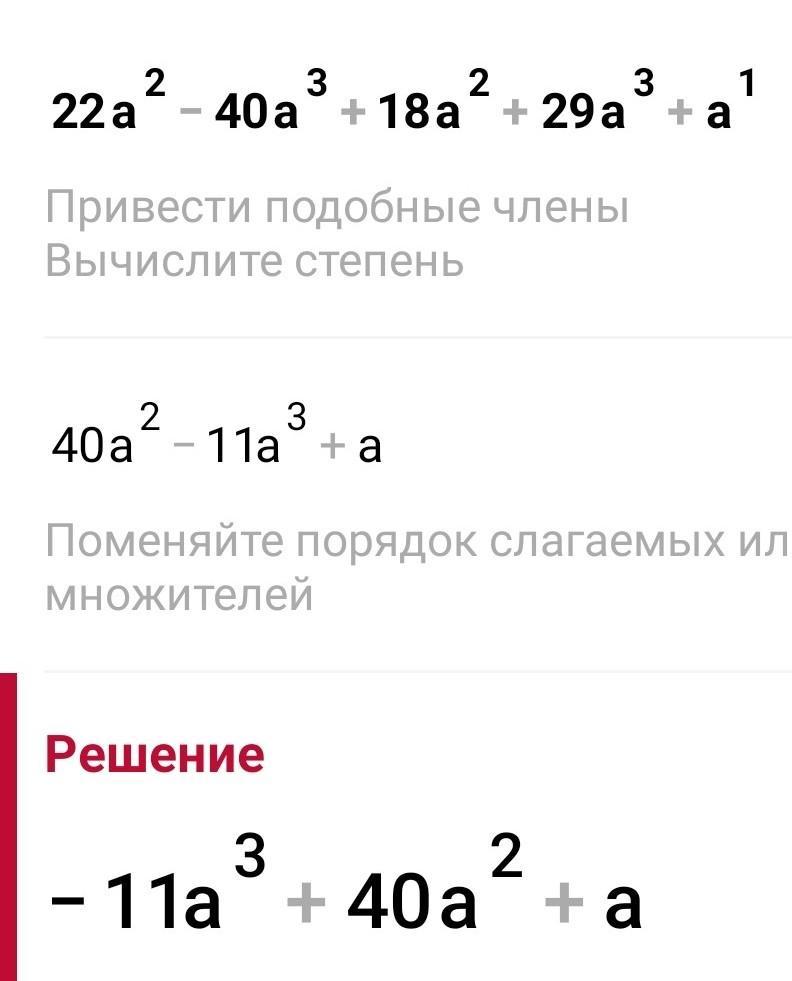 1) 22a²-40a³ + 18a² +29a³+ a¹; 2)-7b5-1366 +15-965+346⁰; 3) 41c² + 62c³ - 99 - 42c² + 38c3; 4) -52k + k - 18k + 52-k.