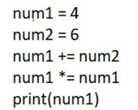 num1 += num2 # присваиваем переменной num1 значение num1 + num2. Теперь num1 = 4 + 6 = 10