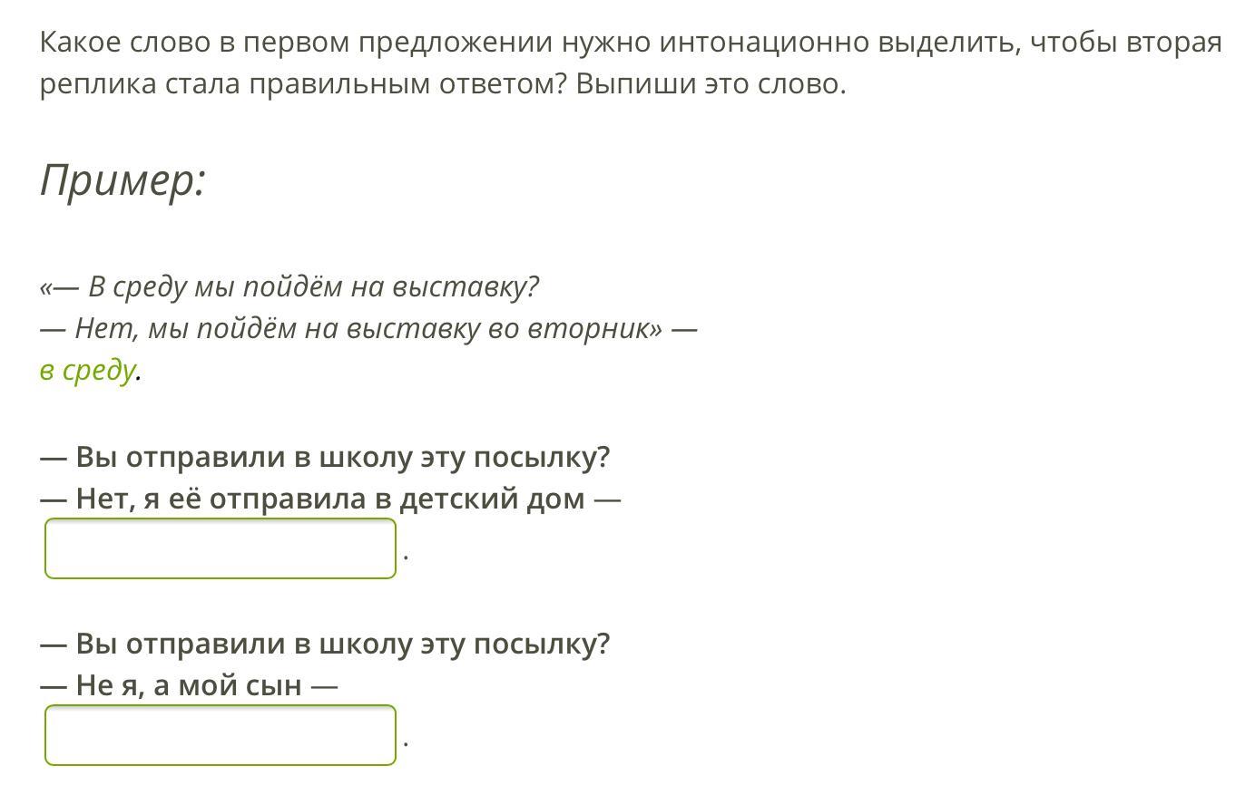Какое слово в первом предложении нужно интонационно выделить, чтобы вторая реплика стала правильным ответом? Выпиши это слово.