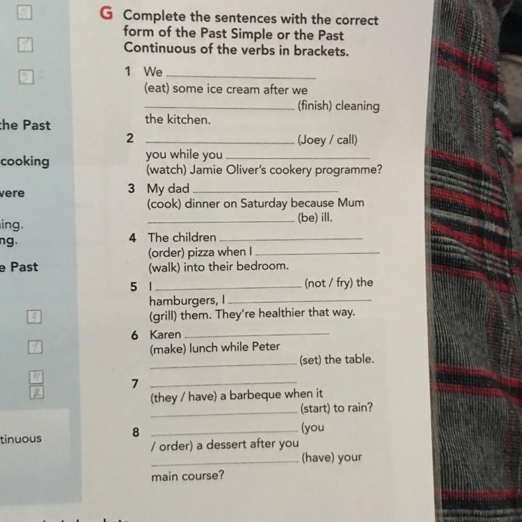 1)ate,fish 2) watching 3)cook 4)orde 5)now fly 6) makes 7) haven't 8)have