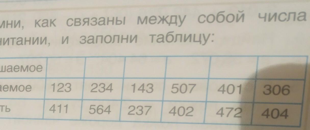 1. 1) Вспомни, как связаны между собой числа ! при вычитании, и заполни таблицу: Уменьшаемое Вычитаемое 123 234 143 507 401 306 Разность 411 564 237 402 472 404