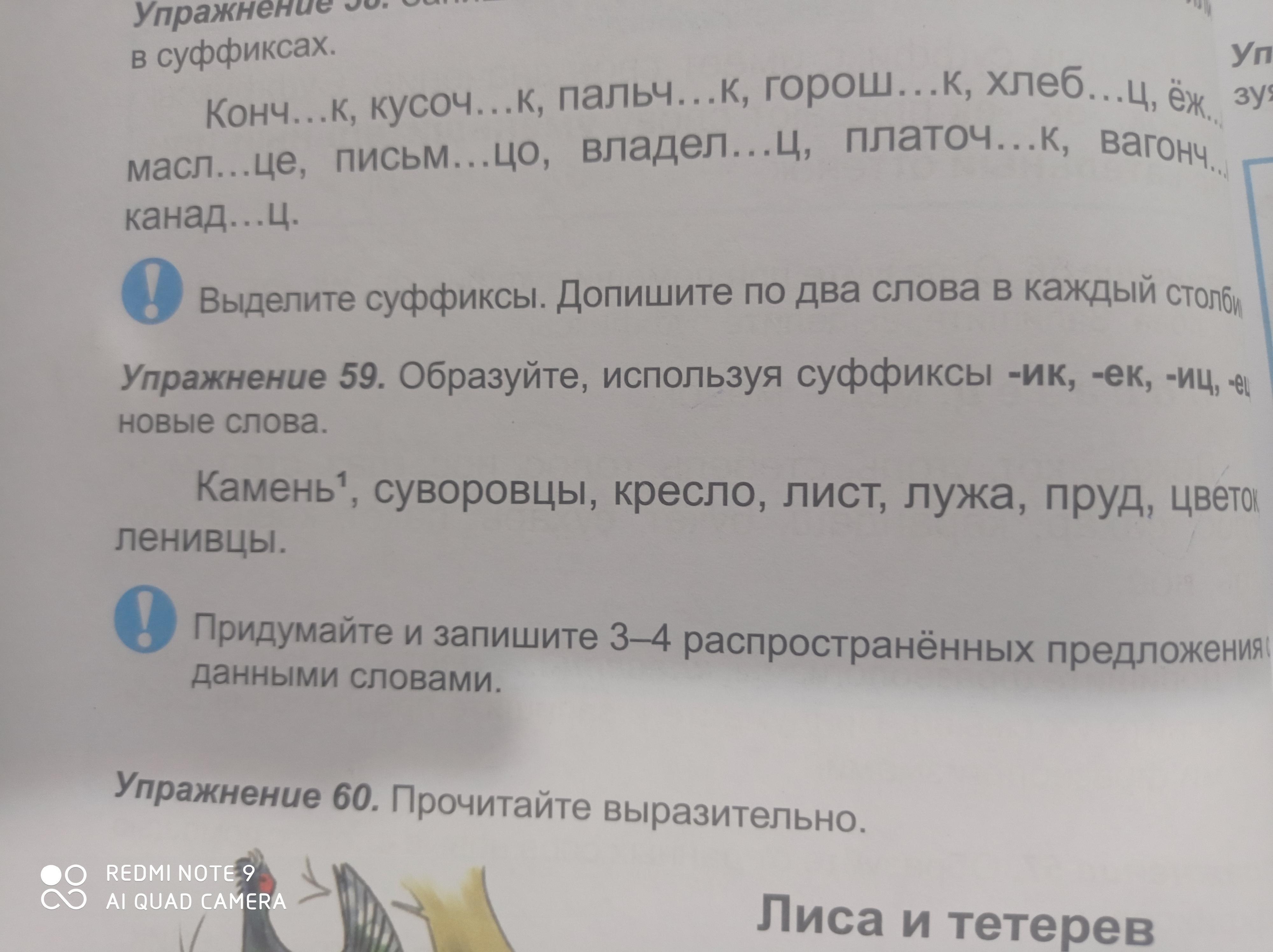 Камень + ек = камешек. суворовцы + ец = суворовец. кресло + иц = креслице. лист + ик = листик. лужа + иц = лужица. пруд + ик = прудик. сынок + ек = сыночек. цветок + ек = цветочек. ленивцы + ец = ленивец.