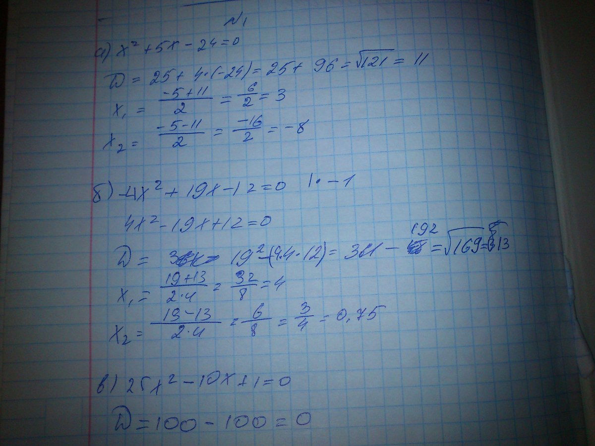 номер 1 в последнем примере дискрименант меньше нуля и корней нет