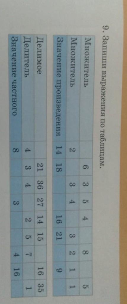7*2=14, 6*3=18, 3*3=9, 5*4=20, 4*4=16, 7*3=21, 8*2=16, 9*1=9, 5*1=5;