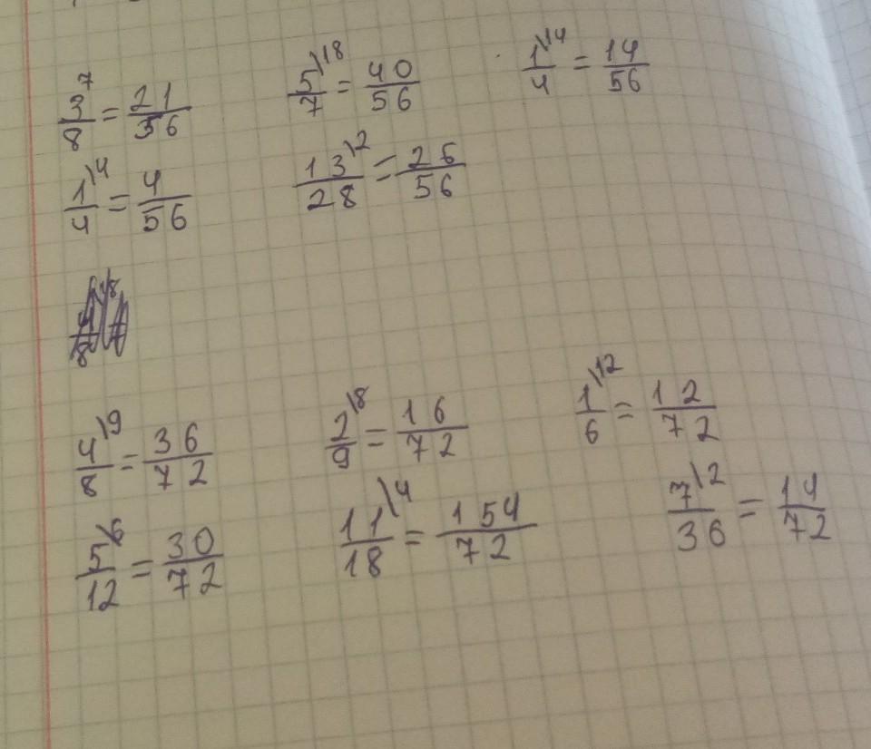 361. Приведите обыкновенные дроби: 1 1 3 5 1) 8 000 13 28 к обыкновенной дроби со знаменателем 56; 4 14 4. 2 1 7 2) 5 11 12'18 100 к обыкновенной дроби со знаменателем 72. 8. 9 6 36