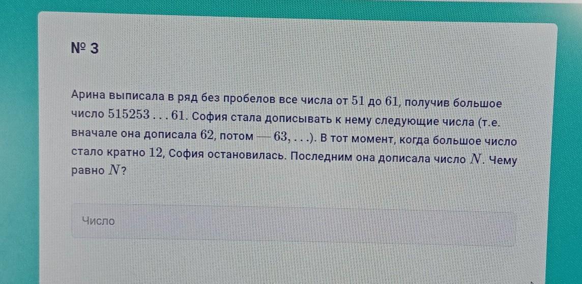 Число 72 также даёт кратность 12. Но есть условие задания :"В тот момент, когда большое число стало кратно 12, София остановилась". И первым числом было 68, а не 72.