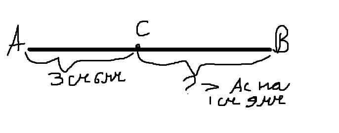 1. Точка С делит отрезок АВ на два отрезка. Найдите длину отрез- ка AB, если длина отрезка АС = 3 см 6 мм, а длина отрезка вс на 1 см 9 мм больше отрезка АС.