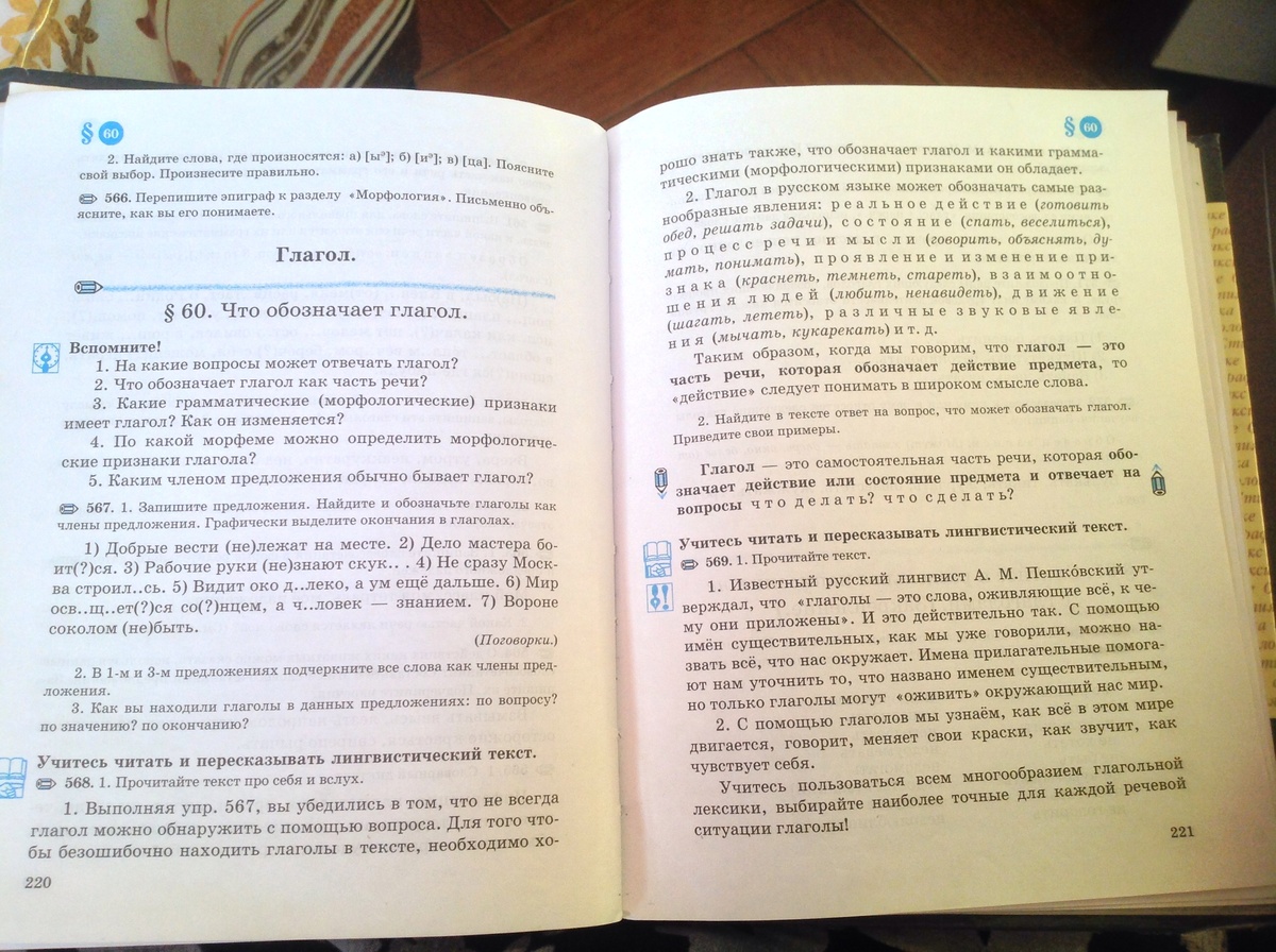 Там написано на странице 221 в начале второй части,,В русском языке глагол....".