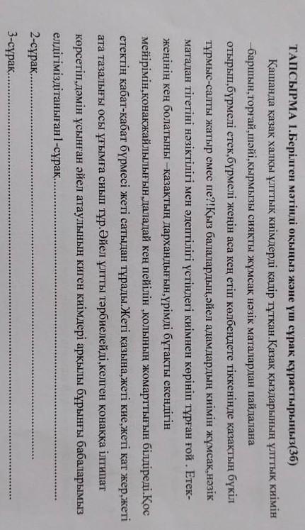 Берілген мәтінді оқыңыз және үш сұрақ құрастырыңыз 3б
