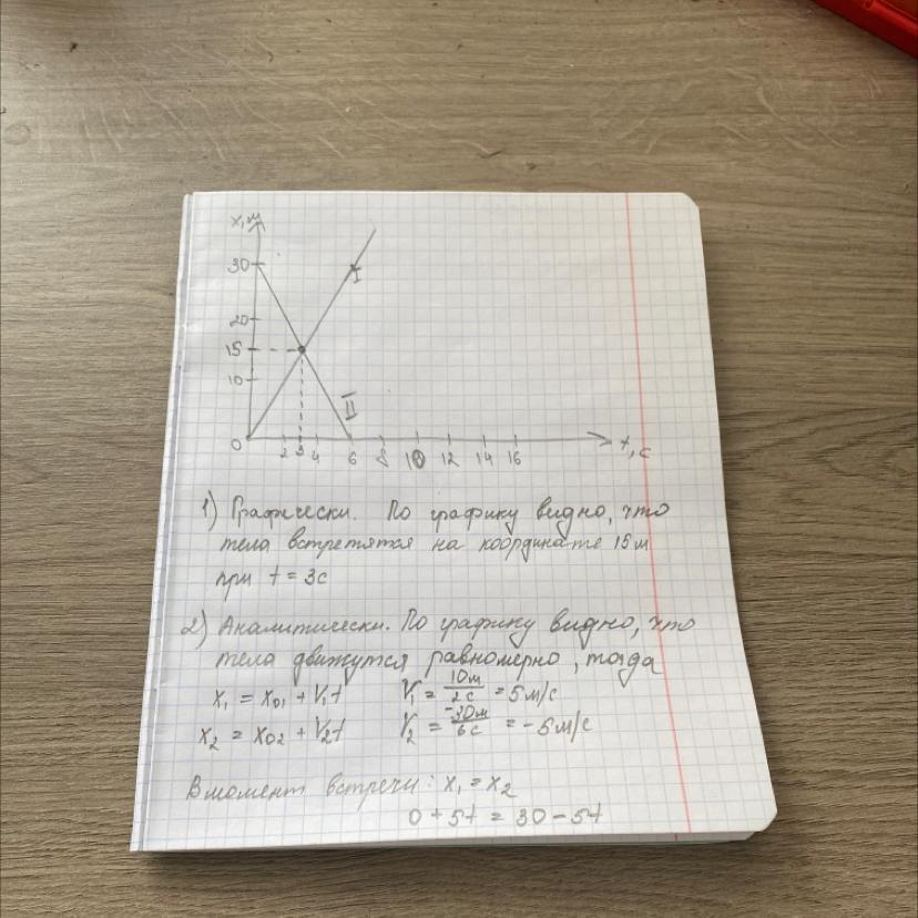 Найти место и время встречи двух тел 2 способами (графич. и аналит)