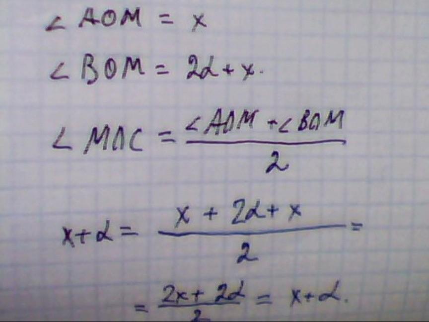 Точка M лежить у внутрішній області кута АОВ. Прoмінь ОС - бісектриса цього кута. Доведіть, що кут MOC дорівнює модулю піврізниці кутів АОMі BOM.