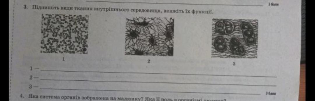 3) не могу представить , что может выглядеть так ужасно , но предположу , что возможно это хрящевая ткань , поскольку содержит группу клеток и много межклеточного вещества + волокна. функция - подвижные соединения костей , так же формирование элластичных частиц в мышечных прослойках для поддержания их каркаса(к примеру в сосудах есть одиночные хрящевые волокна)