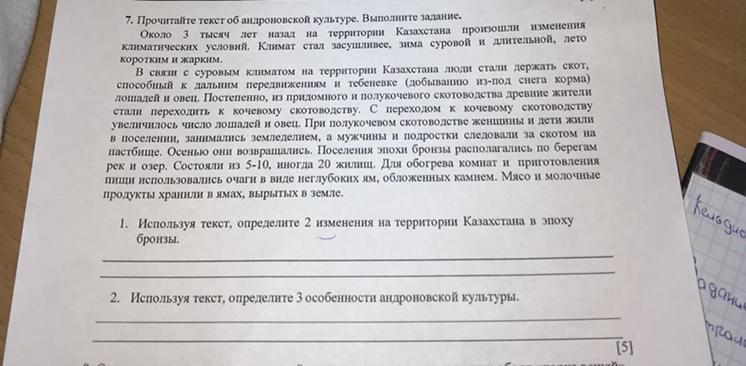 1)используя текст определите 2 изменение на территории Казахстана в эпоху бронзы