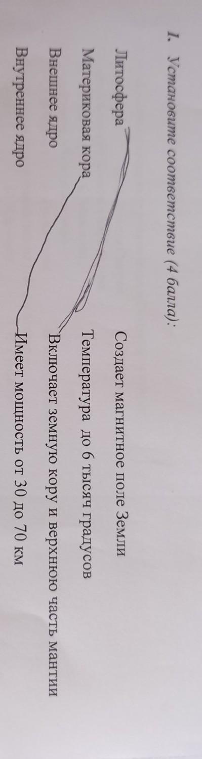 Ответ:3а 4б, внешнее ядро имеет температуру 6 тыс. градусов, а внутренне создаёт МПЗ