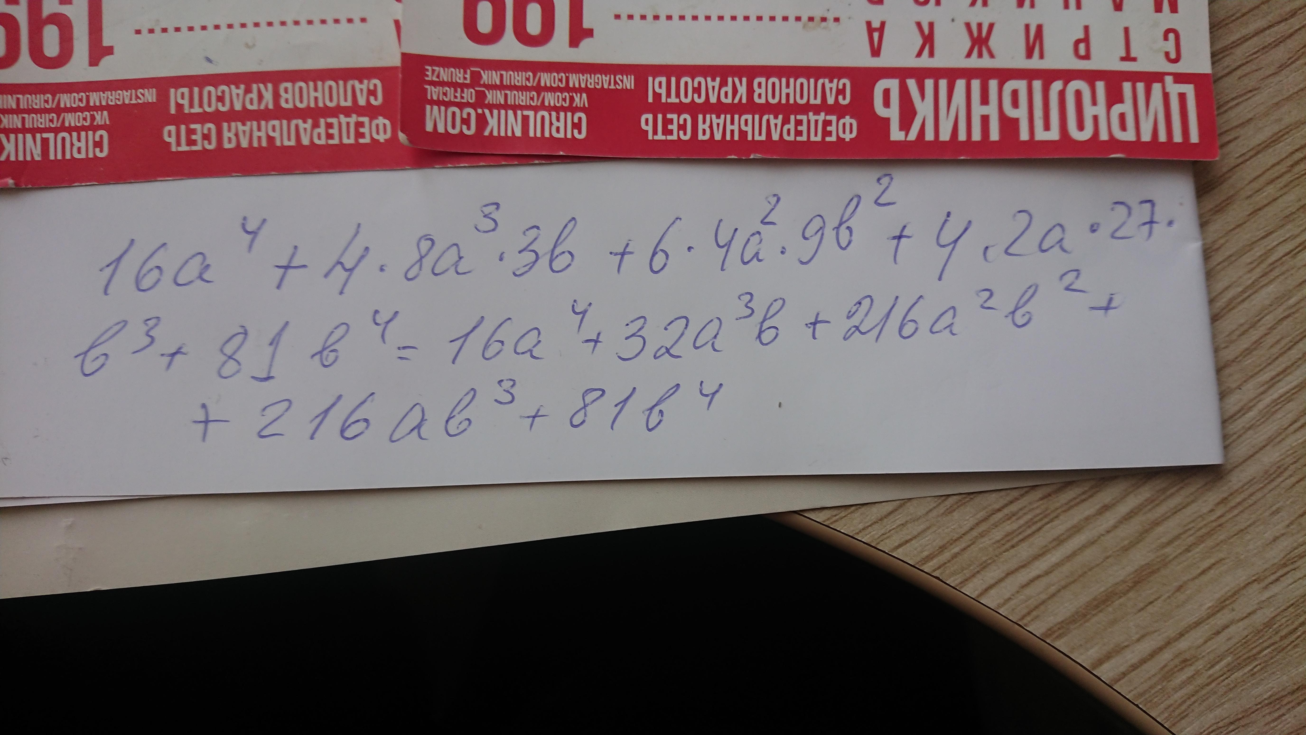 разложите по формуле бинома ньютона (2а+3b)⁴