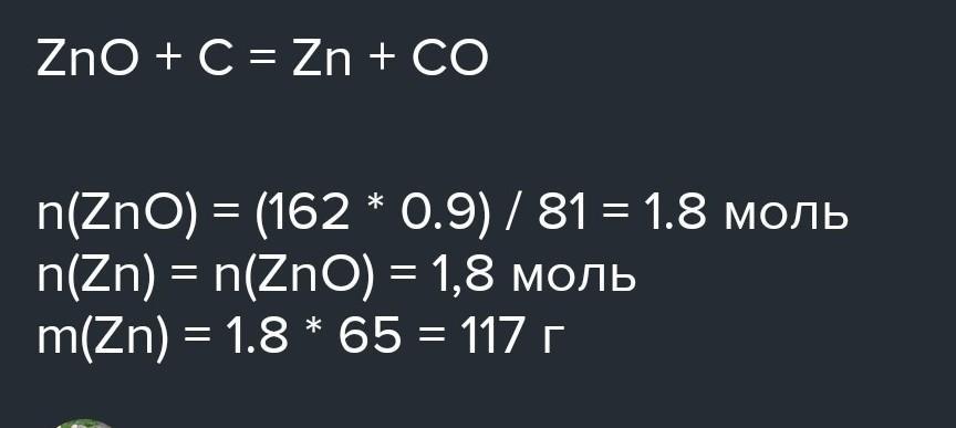 Сколько г цинка образуется из 162 г оксида цинка, содержащего 10 % примесей при восстановлении углеродом, если выход составляет 95%?