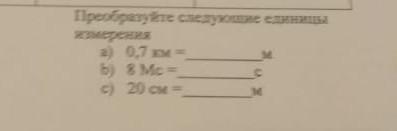 Преобразуйте следующие еденицы измерения