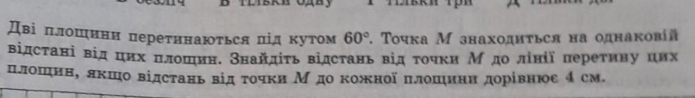 Тоді гіпотенуза, довжина від точки М до лінії перетину площин в двічі більша за відстань від М до площини, як каткт, що лежить навпроти кута в 30°.