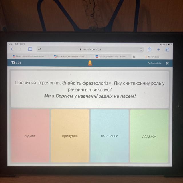 Прочитайте речення. Знайдіть фразеологізм. Яку синтаксичну роль у