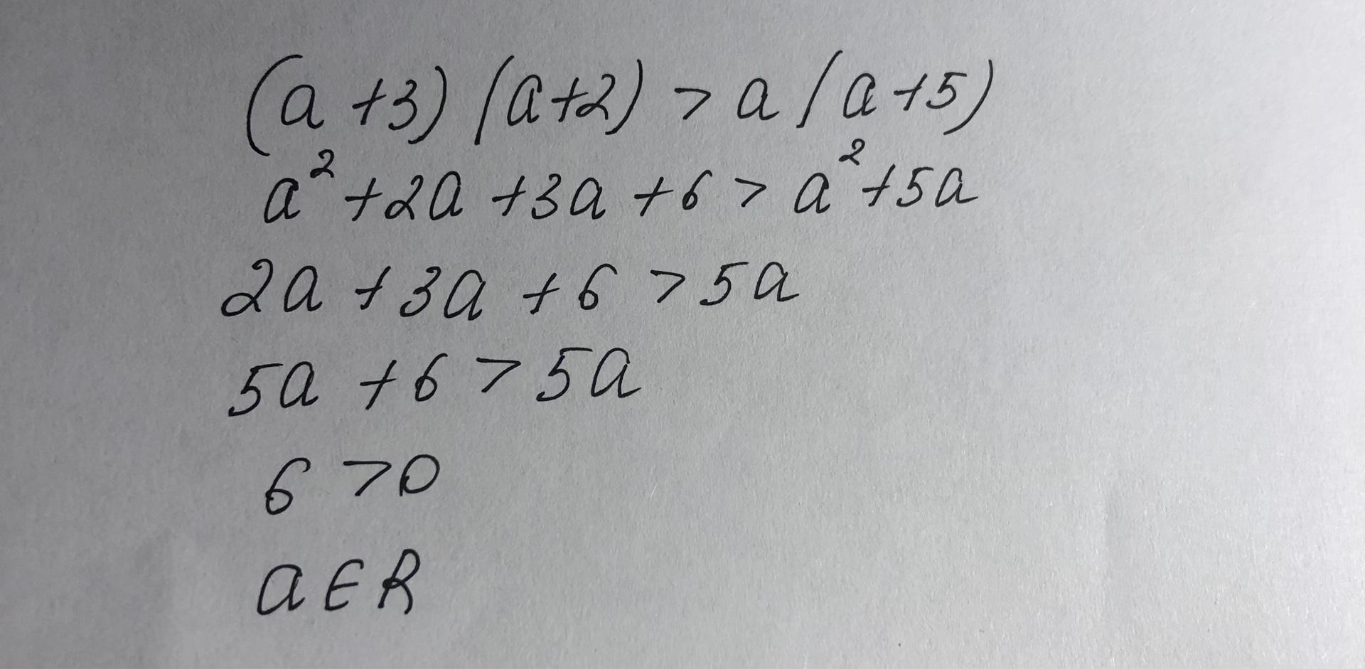 доведіть нерівність (а+3)(а+2)>а(а+5)