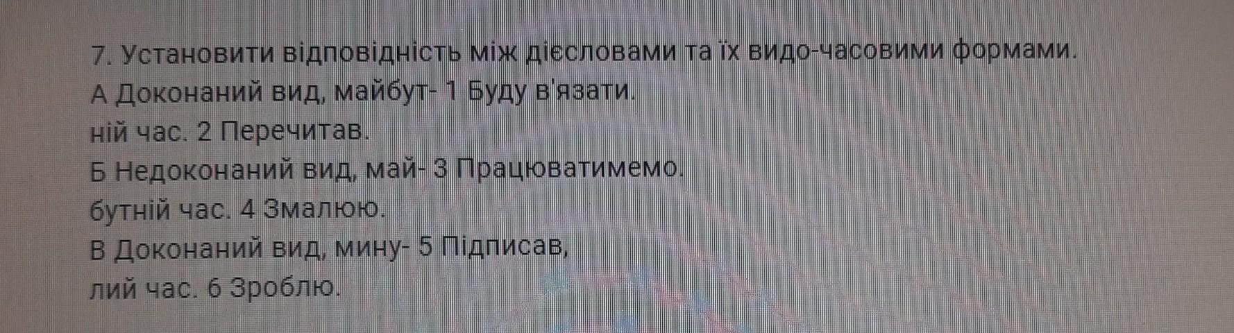 установіть відповідність між дієсловами та їх видо-часовим формами