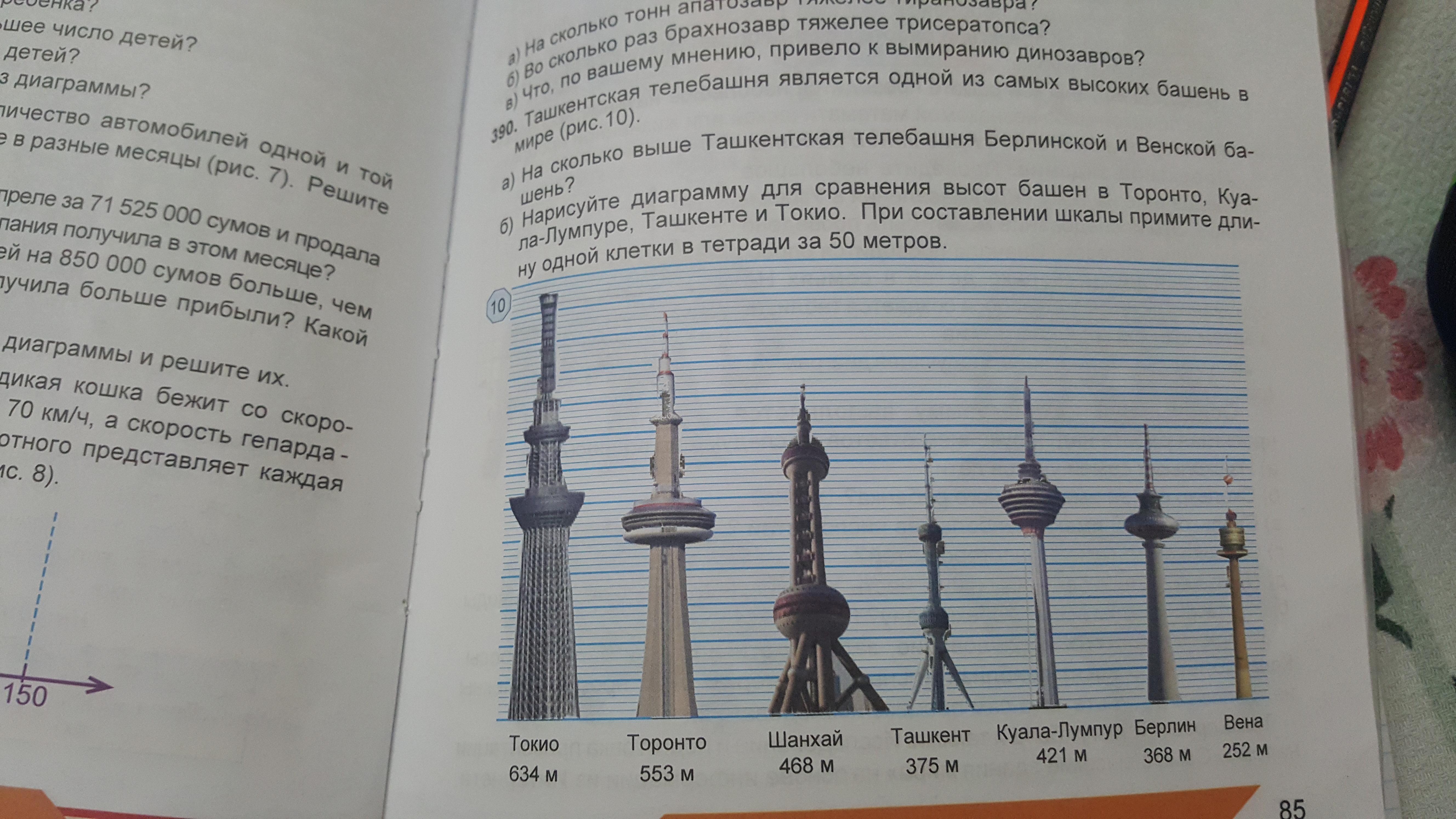 а) Ташкенстская башня больше Берлинской на 375-368=7 метров