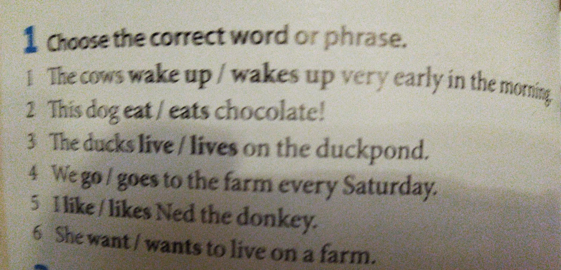 1)wake. 2)eats 3)live. 4)go. 5)like. 6)wants это правильно потомучто мы это уже лелали и я получила пять