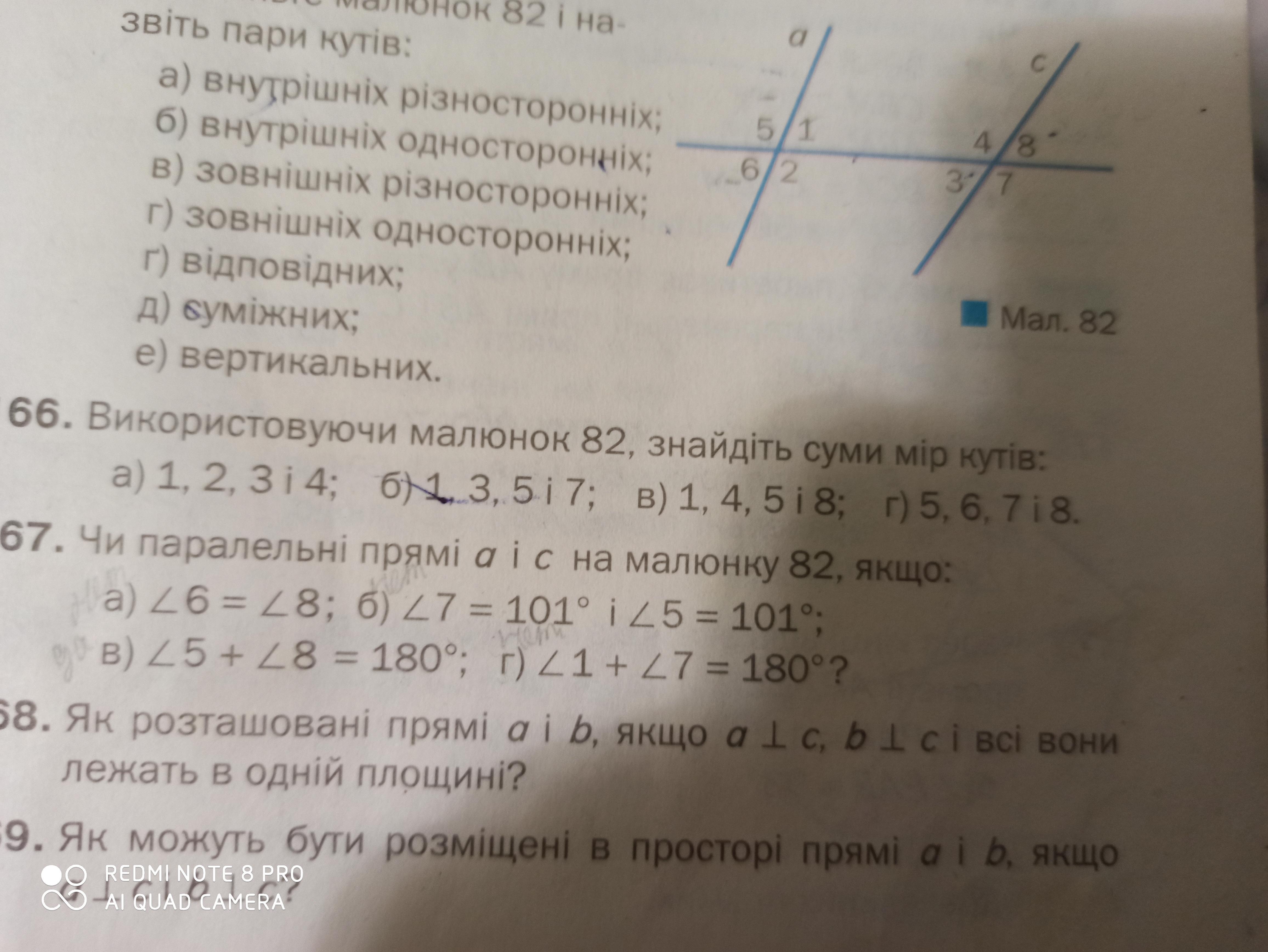 г) ∠5+ ∠6 + ∠7 + ∠8 = ( ∠5+ ∠6 ) + ( ∠7 + ∠8 ) =180° + 180° = 360° ;