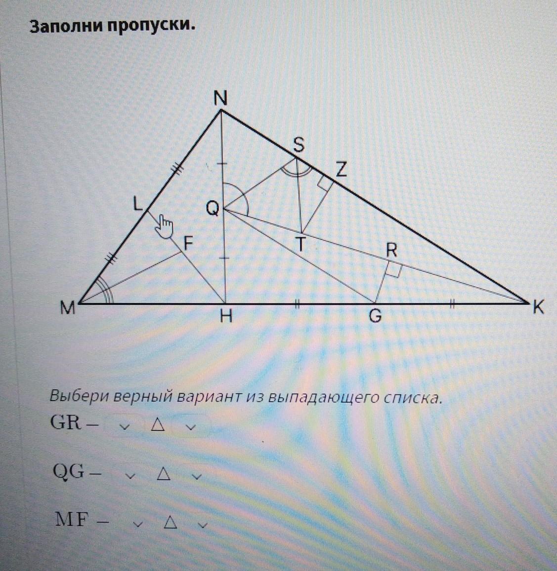 GR - высота ∆QGK, создает прямой угол со стороной QK
