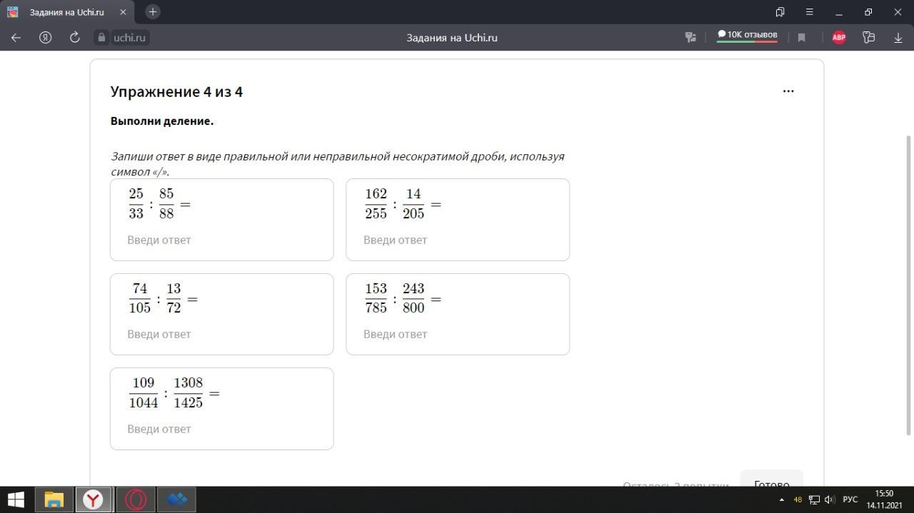 Запиши ответ в виде правильной или неправильной несократимой дроби, используя символ «/».